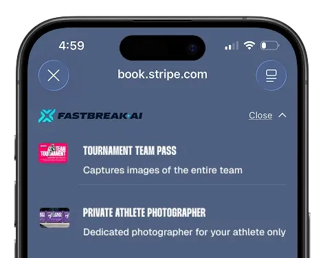 All photos of every athlete on your team, covered for the entire tournament. Best value for players and families, delivered in one private album.
